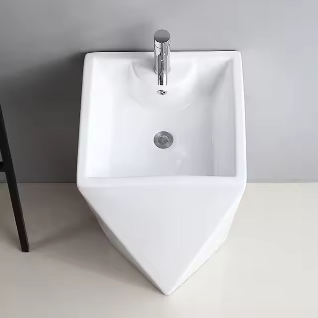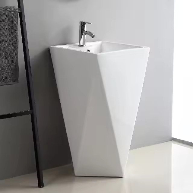 Diamond Floor Mounted Freestanding Bathroom Sink White Artistic Ceramic Pedestal Hand Wash Basin
