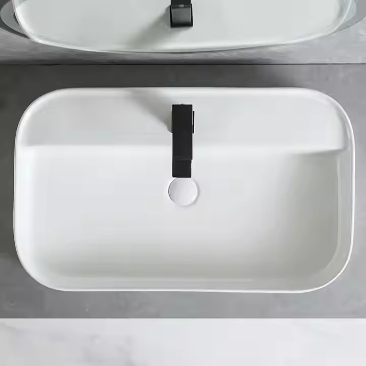 Handmade Modern Ceramic Basin Bathroom Furniture Square and Rectangle Shape with Single-Hole Faucet Mount for Hotels