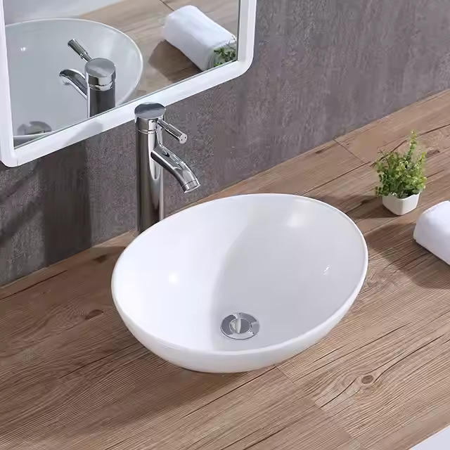 Hot Sale White Oval Shape Vessel Sink Table Top Bathroom Ceramic Sanitary Wares Art Wash Basin