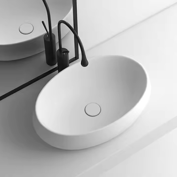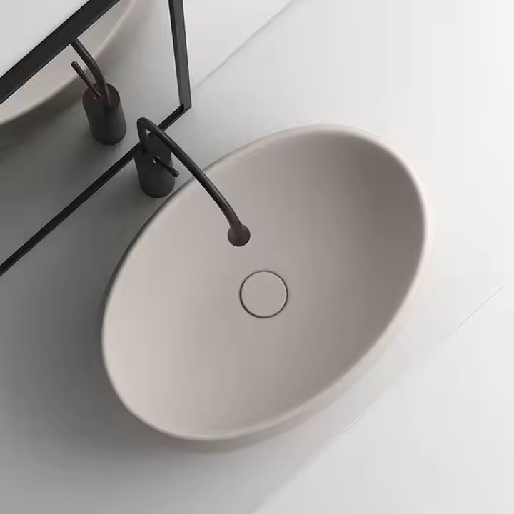 Modern Art Ceramics Bathroom Green Grey Marble Design Hotel Oval Washbasin